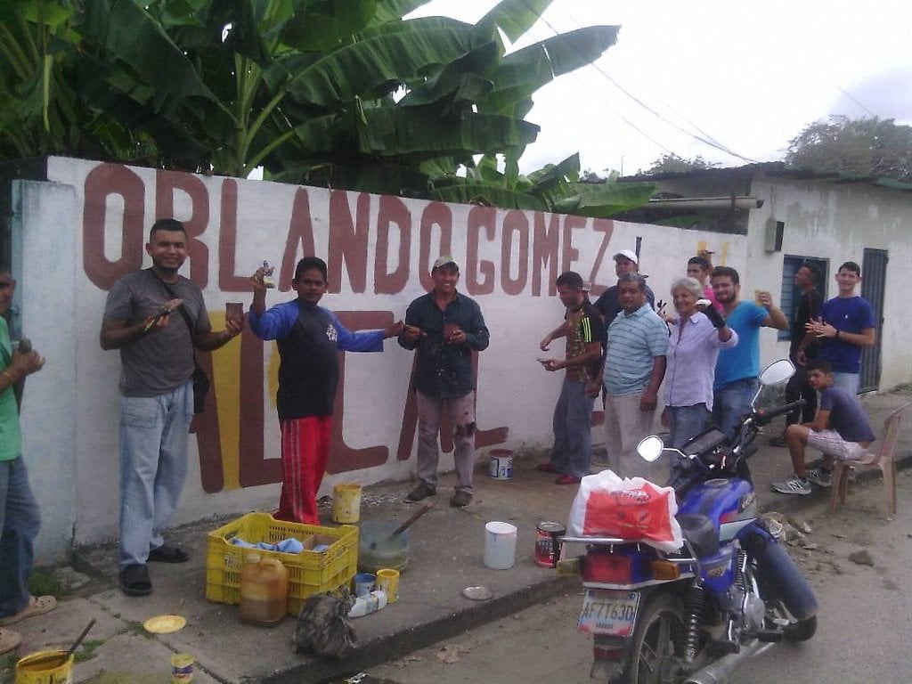 Grupo de partidarios de Orlando Gómez pinta un mural electoral
