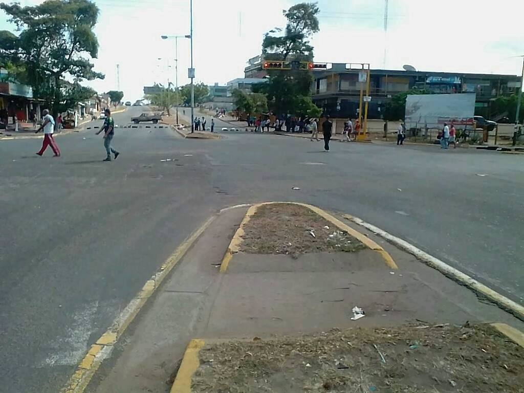 En una imagen compartida por en la red social Twitter se observa la vía cerrada con cauchos y escombros para impedir el tránsito de vehículos.