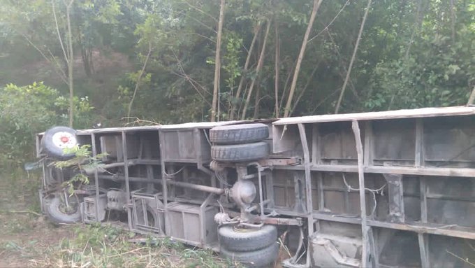 18-11-21.-Un autobus que transportaba unos 50 trabajadores de la empresa avícola La Providencia con sede en Maracay se volcó ocasionando dos muertos y 11 lesionados.