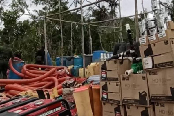 A través de Twitter, el funcionario indicó que, en el campamento, había 12 motobombas, 5 rollos de manguera de alta presión, 3 tambores con diésel y 4 con gasolina, 16 bombas hidráulicas, 100 metros de tubería y 5 motores de combustión, además de "otros materiales logísticos" empleados para esta actividad ilícita.