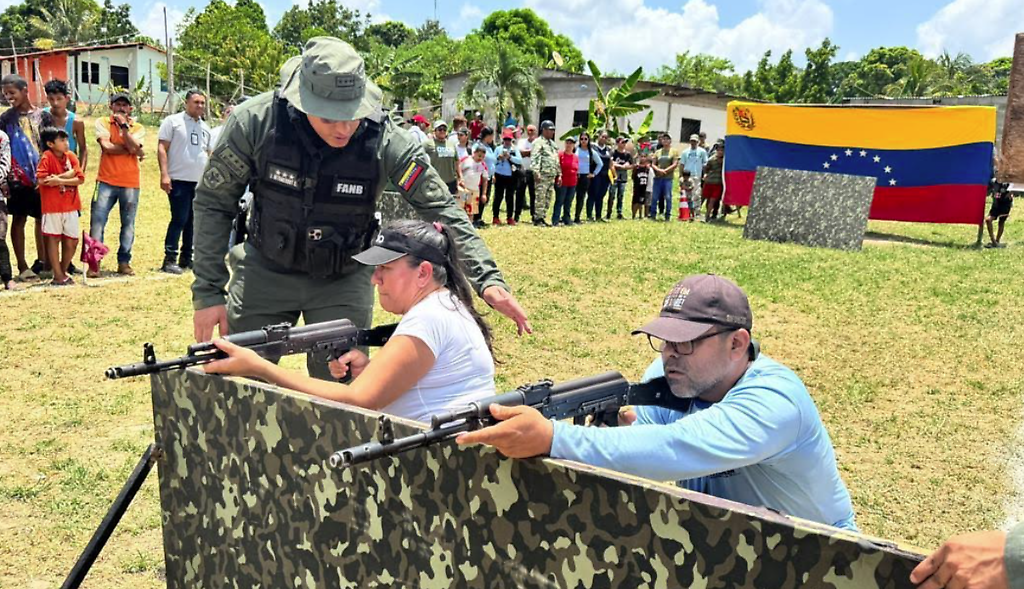 21 de septiembre de 2025.-Desde el Circuito Comunal del sector Agua Fría, en Tumeremo, en el estado Guayana Esequiba, el gobernador Neil Villamizar, junto al General de División Henrry González Velázquez Comandante de la ZODI 64 Guayana Esequiba, lideraron un adiestramiento especial denominado "La FANB va a la Comunidad". Este programa tiene como objetivo capacitar y preparar a la población para una defensa efectiva en caso de amenazas externas, informó Prensa Gobernación Guayana Esequiba.