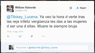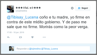 Por último, nótese que en ningún momento estamos hablando de la libertad de expresión. Todos los venezolanos tiene derecho a expresar en redes sociales su posición en torno al Consejo Nacional Electoral y el trabajo de funcionarios públicos, como Tibisay Lucena. Pero una cosa es expresar nuestra aprobación o rechazo a su trabajo, y otro es amenazarla de muerte.