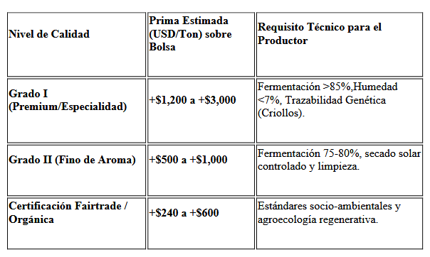 El mercado mundial premia la excelencia. El cacao venezolano no debe venderse al precio estándar de las bolsas de Nueva York o Londres; debe transarse con una Prima Especial (Premium). Esta prima es el pago directo por el rigor bioquímico aplicado en el campo.