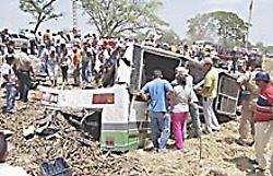Caracas 25 de marzo 2008. - 20 personas fallecieron trágicamente y otras 20 resultaron heridas ayer en el estado Portuguesa, cuando una gandola cargada de caña de azúcar chocó contra una buseta de pasajeros que se dirigía en sentido contrario.