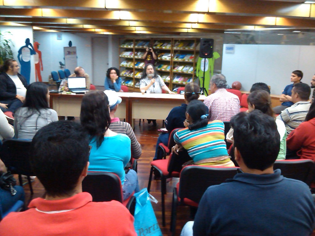 30 junio 2013 - En la décima visita a Venezuela de Richard Stallman y en el marco del 9° Congreso Nacional de Software Libre (CNSL), se desarrolló un conversatorio sobre propiedad intelectual y el Software Libre.