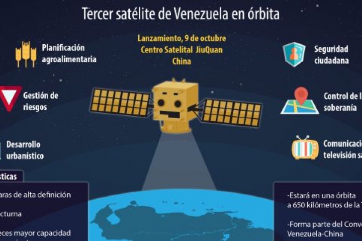 Caracas, octubre 9 - Venezuela lanzó con éxito su tercer satélite a la medianoche de este domingo desde la República Popular de China y entrará en órbita durante la madrugada del lunes 9 de octubre.