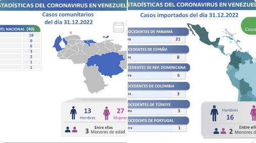 Sobre los casos importados aseguró que fueron de personas procedentes de Panamá (21), España (8), República Dominicana (6), Colombia (3), Turquía (3) y Portugal (1), todos con entradas por Vargas.