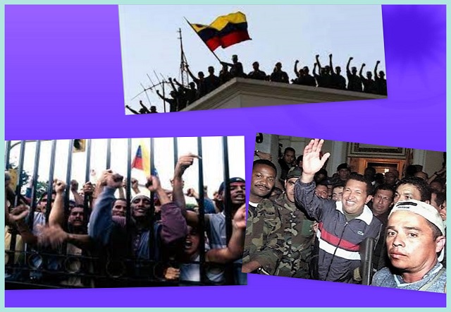 - En 2002, el presidente Hugo Chávez retoma la presidencia de Venezuela, después del fracasado golpe de Estado del 11 de abril. El pueblo movilizado por su rescate y retorno de su lugar de detención, adonde había sido llevado por los golpistas, continúa volcado en las calles para celebrar su regreso.