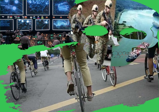 Imágenes alusivas a efemérides destacadas del 3 de junio: Falsa alerta nuclear (1980), Ejército de USA evacúa el Canal (1994), Día Mundial de la Bicicleta
