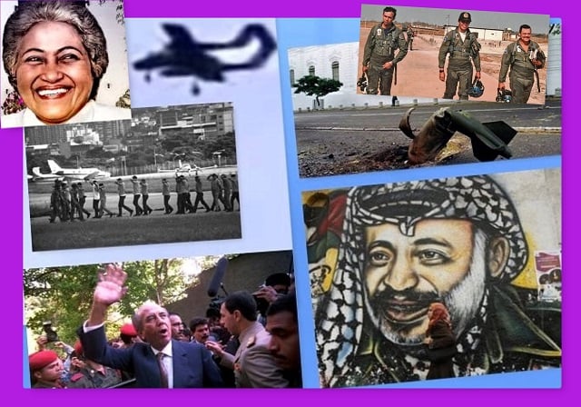 Imágenes alusivas a las efemérides destacadas. Arriba, Argelia Laya. Luego, imágenes relacionadas con el 27 N y abajo (Dcha) mural con rostro de Arafat