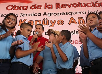 12 de octubre 2008. - El Presidente Hugo Chávez, en un acto en la población de San Rafael del Moján, estado Zulia, para inaugurar la primera etapa del acueducto Winka para la Guajira, celebró con comunidades originarias el Día de la Resistencia Indígena, tal y como se conoce en Venezuela y Bolivia al 12 de Octubre, llamado en otros países "el Día de la Raza" o "El Día del Descubrimiento".