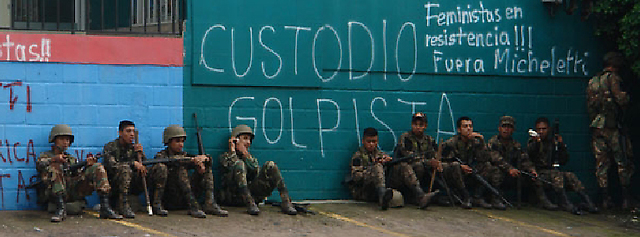 que resultó con dos cuágulos en el cerebro por el arrollamiento. El bloqueo informativo ha dificultado confirmar la versión de que el compañero habría fallecido ayer en la mañana. Con la militarización de esta sede, los golpistas se aseguran el control de la telefonía y las señales de radio y Tv. A las puertas de Hondutel llegaron manifestantes haciéndole llamado a los soldados a sumarse a la lucha.