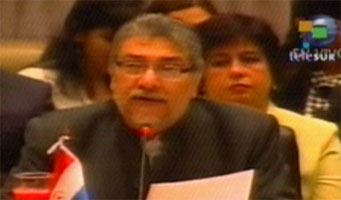 24 de julio 2009. - El presidente de Paraguay, Fernando Lugo, en su discurso inaugural de la trigésima séptima cumbre del Mercado Común del SUR (Mercosur) que se realiza en su país, condenó de forma categórica el golpe de Estado contra el Gobierno del presidente Manuel Zelaya e indicó que "Honduras es una herida que sangra en la democracia regional".