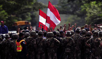 24 de julio 2009.- El Ejército de facto de Honduras mantiene bloqueada la frontera con Nicaragua, mientras los movimientos sociales esperan encontrarse este viernes con el presidente legítimo y constitucional de Honduras, Manuel Zelaya, en el departamento del Paraíso.