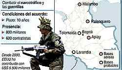 En virtud de este acuerdo, habrá permanentemente en Colombia, por lo menos, mil 400 soldados norteamericanos, 800 de manera directa y otros 600 bajo condición de contratistas, quienes harán uso de dicha cantidad de bases militares.