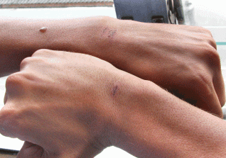 quemar con cigarros la cara, en tres ocasiones me quemaron, el brazo en