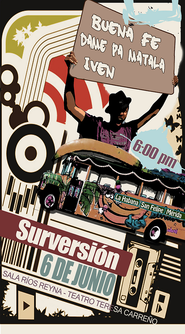 4 de junio de 2010.-La Televisora Venezolana Social, Tves y la Fundación Teatro Teresa Carreño presentan un concierto por la paz y la dignidad del pueblo de Gaza y en homenaje a la integración del Sur, a cargo de los grupos venezolanos Dame pa`matala, Iven, y como invitado internacional, la agrupación cubana Buena Fe. El espectáculo llamado Surversión será este domingo 6 de junio, en la Sala Ríos Reyna del Teatro Teresa Carreño, a las 6 de la tarde y la entrada es libre.