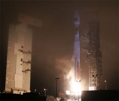 El cohete de 193 pies iluminó el cielo luego de un despegue exitoso ayer, desde la Base de la Fuerza Aérea Vanderberg.