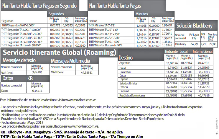 (Listado) Movilnet y Cantv publican aumento de tarifas