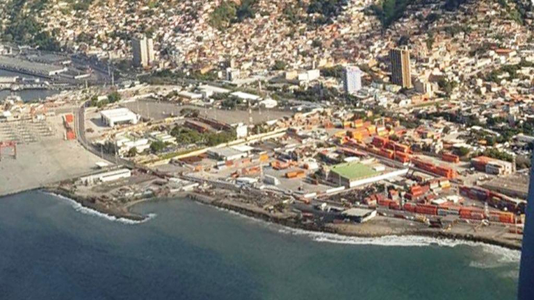 En las imágenes se pueden observar las extensas terrazas y maquinarias de importancia para movilizar grandes cargamentos detenidas como mudos testigos de una realidad. En un área al extremo derecho se pueden apreciar algunos unos lotes de contenedores.