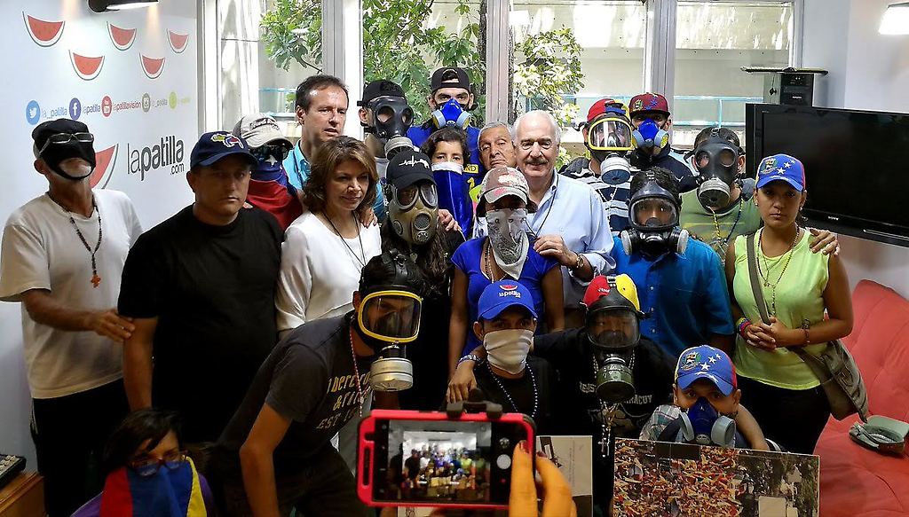 Julio 17 de 2017.- Un escándalo en las redes ha causado la imagen de Laura Chinchilla (Costa Rica), Jorge Quiroga (Bolivia) y Andrés Pastrana (Colombia), quienes posan complacidos al lado de guarimberos, para muchos es una falta de respeto el retratarse con los que trancan avenidas, ponen barricadas, lanzan bombas molotov y que han atentado contra seres humanos, instituciones y el orden público.