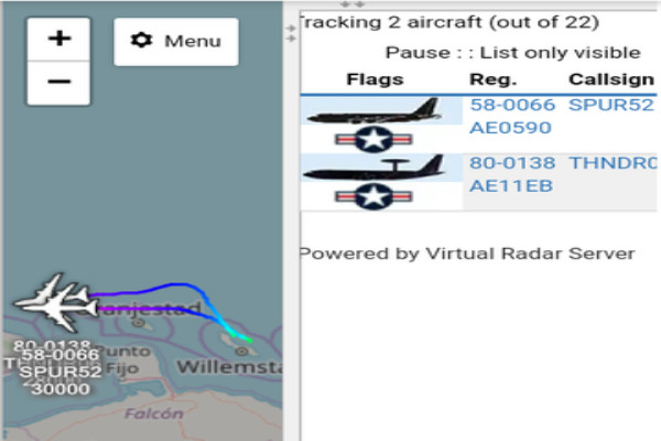 29 julio 2019 - Dos aeronaves militares de la USAF despegaron al final del día 28 de Julio desde el aeropuerto internacional de Curazao y se dirigieron al espacio aéreo de Colombia para realizar aparentemente un recorrido por la frontera occidental de Venezuela, según reportes de servicios de radares web.