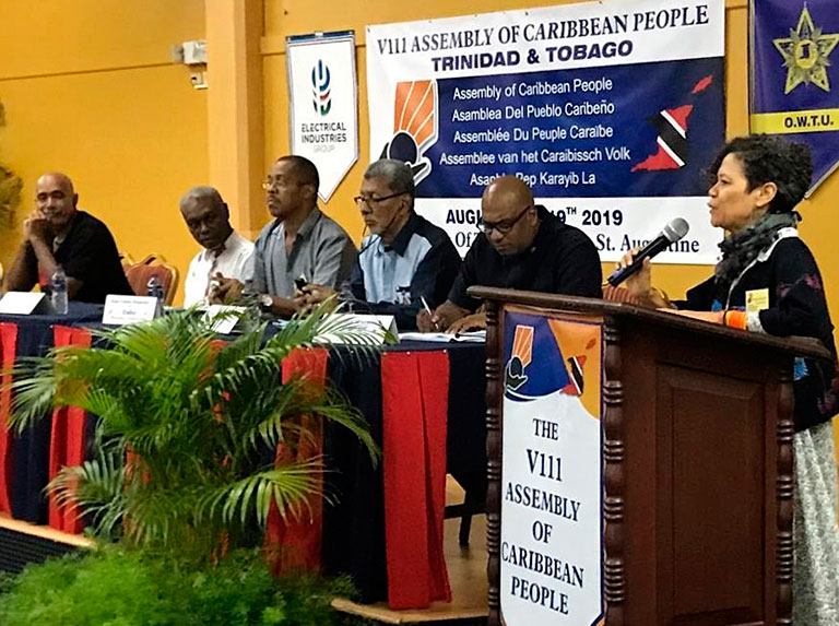 19 agosto 2019 - La VIII Asamblea de los Pueblos del Caribe, que se llevó a cabo en Trinidad y Tobago, denunció el decreto ejecutivo firmado por el presidente de Estados Unidos (EEUU), Donald Trump, en el que se ordena congelar bienes y activos de Venezuela en la nación norteamericana, además de prohibirse las transacciones comerciales y financieras.