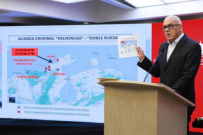 Rodríguez también denunció que el gobierno de Colombia y el narcotráfico aseguraron la ruta a los participantes en la Operación Gedeón del 3 de mayo. Denunció que existe una relación directa entre el grupo narcotraficante Los Pachencas, que controla parte del norte de la Alta Guajira, y el narcotraficante Elkin López, alias «Doble Rueda».