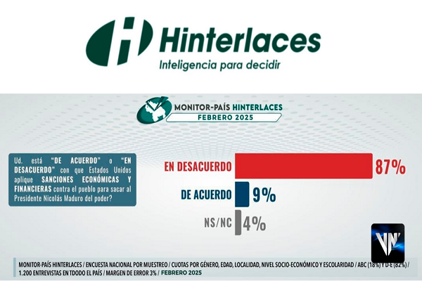 El monitor país Hinterlaces reveló que el 87% de los venezolanos están en desacuerdo con que Estados Unidos aplique sanciones contra el país.