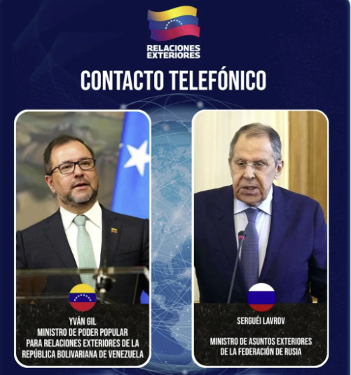 A través de sus redes sociales, el canciller Yván Gil, informó que conversó con Serguéi Lavrov en un marco de significativa relevancia.