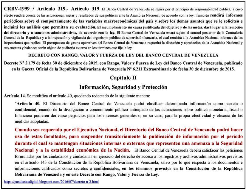 [i] Ver en rojo el agregado que se le hizo a la Ley del BCV, Artículo 40, a través del Decreto N° 2.179 de fecha 30 de diciembre de 2015: