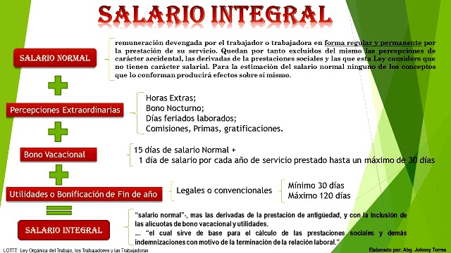 - Y principalmente en el Salario Integral conformado por el Salario Normal + otros conceptos con incidencia salarial y que repercuten en el cálculo del Salario Mediato (vacaciones, utilidades - remuneraciones de fin año) y en el Salario Futuro (prestaciones sociales una vez terminada la relación laboral).
