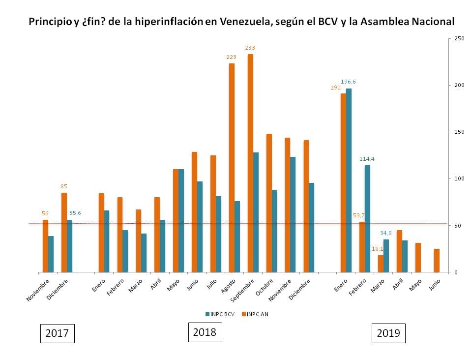 Nuestro punto entonces era que de ser cierto lo afirmado por la AN, significaba que, técnicamente hablando, nos encontrábamos ante el fin del rally hiperinflacionario que desde noviembre de 2017 esta instancia en desacato venía reportando extraoficialmente, en el entendido de que, según los convencionalismos económicos, se habla de hiperinflación cuando el Índice Nacional de Precios al Consumidor supera el 50% mensual.