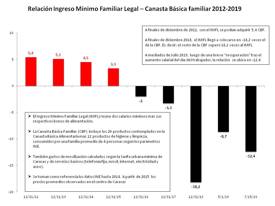 Por otra parte, debe tomarse en cuenta que la pax cambiaria puede que ya se esté agotando: el tipo de cambio paralelo viene aumentando significativamente, al punto que la brecha entre uno y otro se está ampliando y para el día de hoy, 17 de julio de 2019, ya se ubica en torno al 40%, siendo que el paralelo ya está sobrepasando la barrera de los 10 mil soberanos. En este aumento deben estar influyendo varios factores: desde la manipulación pura y dura dado el desinfle del guaidonato y para meter presión en Barbados, hasta el fin de la luna de miel de las mesas interbancaria, pasando por el aumento relativo del gasto en bolívares en las últimas semanas por parte del Estado. No es descartable tampoco que sea un movimiento previo anticipándose al aumento salarial. Pero también hay que tomar en cuenta que el aumento de los costos en bolívares ha erosionado la capacidad de compra del dólar, lo que no solo hace que sus tenedores busquen mejor precio sino además puede estar causando que el flujo de remesas ralentice ya que no rinden lo mismo que hace meses.
