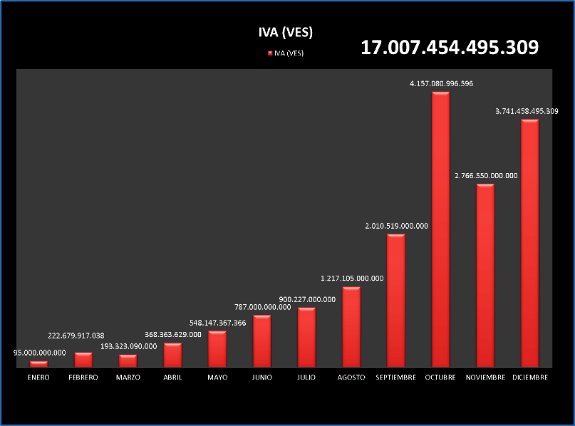 • Impuesto al Valor Agregado (IVA): 4.196.589.266.644 bolívares (más de 4 Billones: muchísimos pobres que son los que más aportan)