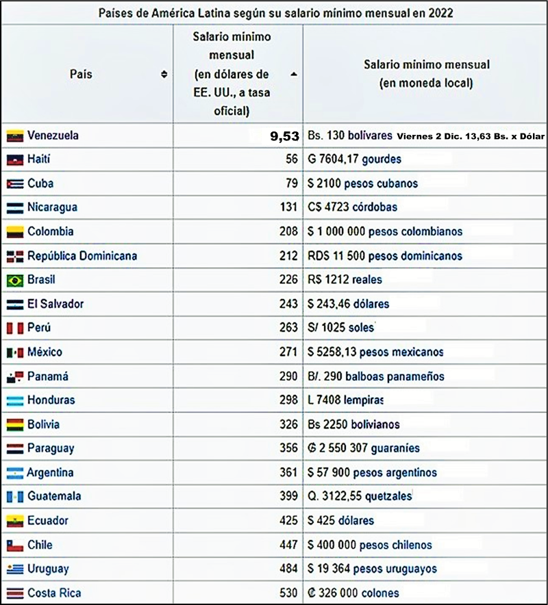 El exagerado Salario Mínimo mas bajo de Latinoamérica