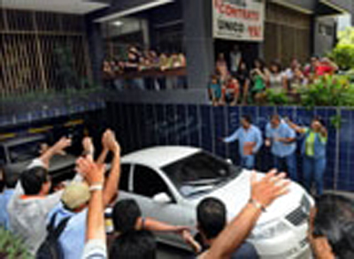 que en sus vehículos se abrieron paso entre el tumulto de empleados