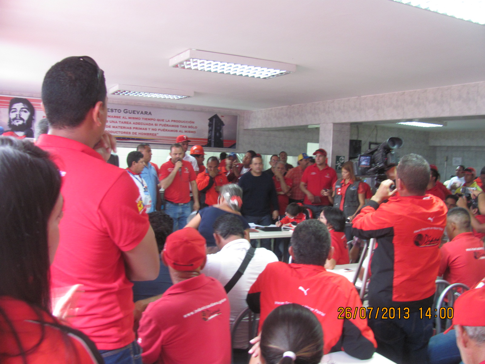 Los trabajadores continuaron la producción –en ningún momento desde iniciado el conflicto se ha paralizado– mientras convocaban a los colectivos sociales, comunales, sindicales y de izquierda a que hiciéramos presencia en solidaridad con ellos. Una masiva asamblea inició a las 2 de la tarde, los puntos debatidos más relevantes fueron: rechazo a la imposición gubernamental del nuevo gerente general y su junta directiva, y proponerle al ejecutivo nacional el/los candidatos surgidos de los trabajadores con experiencia profesional y política para asumir los cargos. Ambos fueron aprobados por decisión unánime de los trabajadores.