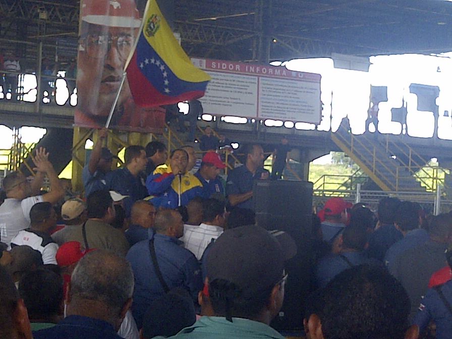En la mañana de este viernes 25 se realizó una histórica asamblea en el Portón 3 de SIDOR. Dirigentes sindicales de todas las industrias básicas se hicieron presentes para solidarizarse con los sidoristas. El rechazo hacia las amenazas y “olvidos” del Diputado Cabello fue contundente.