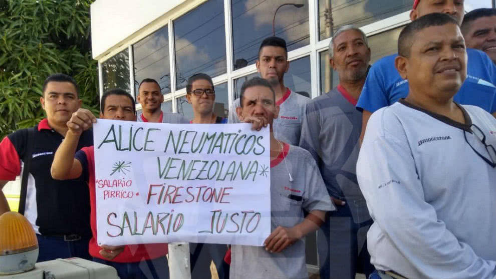 El vocero del sindicato de Firestone, Levis Barrios dijo que los trabajadores del sector han “tenido que optar por otros oficios como vender tortas y arepas (tostadas venezolanas) fuera de las labores cotidianas para poder subsistir (…) y llevar alimentos a nuestras familias pese a que trabajamos en trasnacionales privadas”.