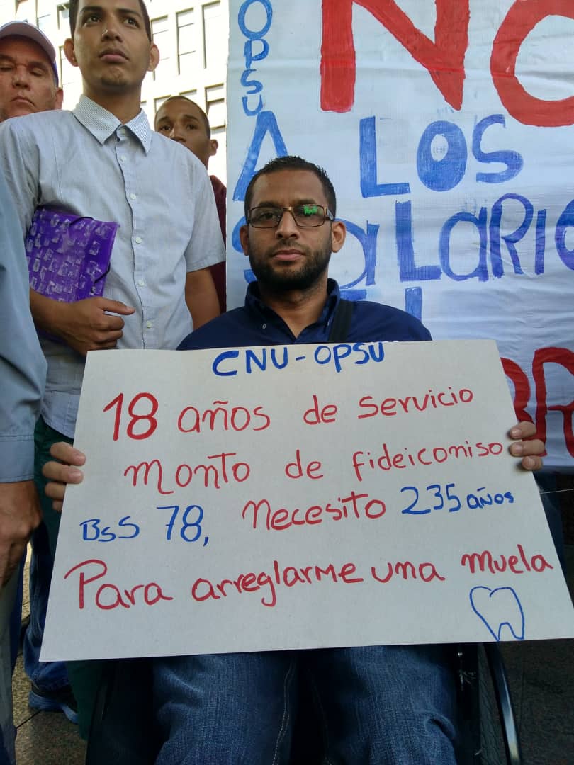 Alejandro Negreti, trabajador que se encuentra en silla de ruedas fue despedido por atreverse a reclamar la prolongada falta de agua potable en la institución para la que labora, el Consejo Nacional de Universidades y de la Oficina de Planificación y Presupuesto Universitario.