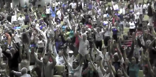 Viernes, 09 de noviembre de 2018.- Ayer jueves ocho, luego de leída por la representante del FAPUV de la UCV, la profesora Keta Stephany, fue aprobada por aclamación en el Aula Magna de la UCV la proclama de la Intersectorial de Trabajadores de Venezuela. Un Aula Magna animada, rebosante de la energía de los trabajadores que se puso de pié y a brazo alzado, cuando Eduardo Sanchez les culminó a aprobar la proclama de la Intersectorial de los Trabajadores de Venezuela.