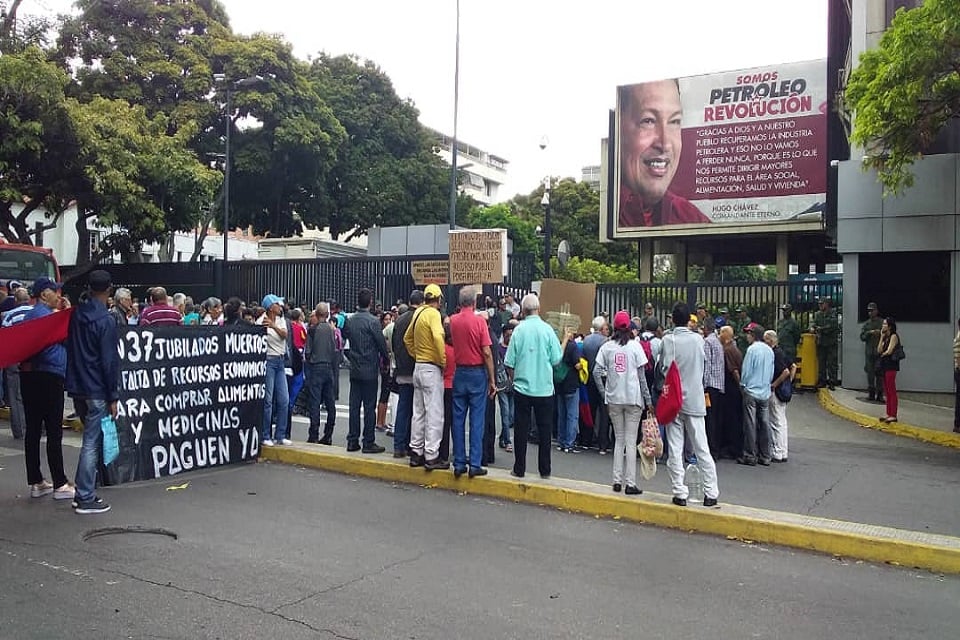 Las pensionados manifestaron su malestar por el incumplimiento en el pago de sus pensiones. “Nuestro fondo de pensiones fue desviado, ultrajado y mal manejado por PDVSA”, expresó unl representante de los jubilados petroleros y petroquímicos del país.