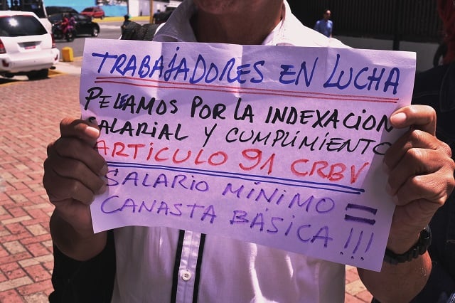 Exigen que se cumpla el artículo 91 de la Constitución de la República Bolivariana de Venezuela, que establece que para la fijación del salario mínimo sea tomando en cuenta, como una de sus referencias, el costo de la canasta básica de consumo familiar.
