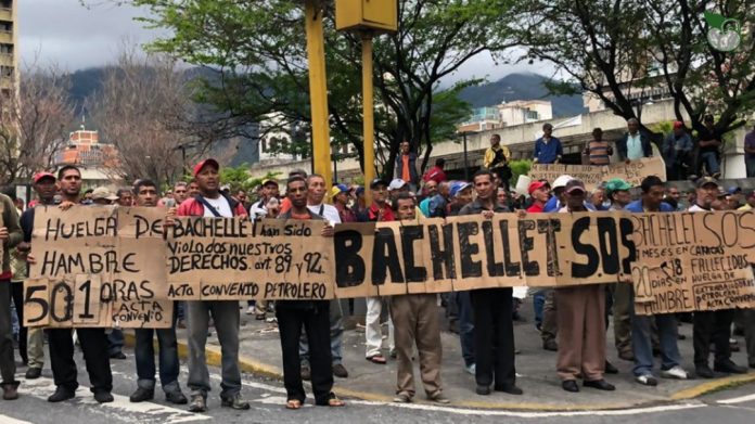 "Le pido a Bachelet que venga y vea cómo nos están violando los derechos humanos. 14 compañeros tienen 20 días en huelga de hambre y nadie nos atiende, nos dicen puras mentiras", denunció Carlos Camejo, trabajador del sector petrolero.
