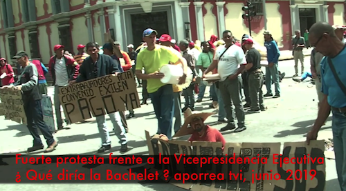 Domingo, 23 de junio de 2019.- El viernes 21 de junio de 2019 ocurrió un fenómeno inusual en todo el centro de Caracas, en la principalísima esquina de Carmelitas, justo frente a la sede de la Vicepresidencia Ejecutiva de la República donde un nutrido grupo de ex-trabajadores de la industria petrolera realizaron un fuerte protesta, sentados en la calle, exigiendo que se les cancelara una deuda pendiente desde ya hace muchísimo tiempo.