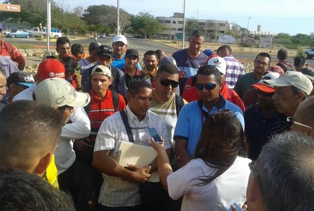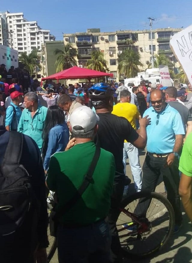 Trabajadores petroleros en barcelona y Pto La Cruz se movilizaron hasta la GNB (a la izquierda) en protesta ppor detenciones y represión