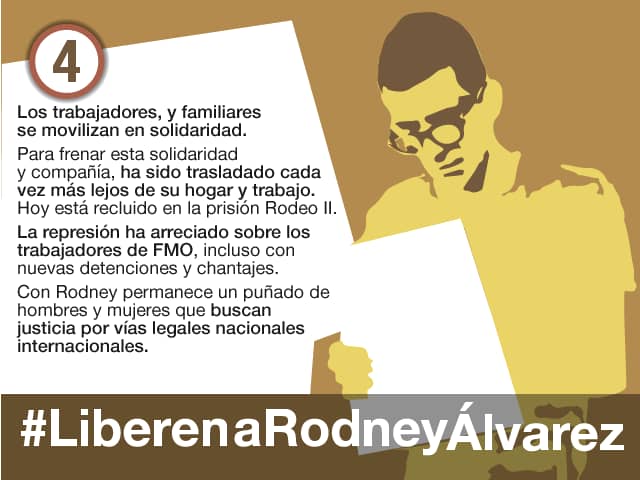 En varias oportunidades durante el presente año y en años anteriores se han producido campañas, con concentraciones ante los tribunales, denuncias internacionales y tuitazos por la libertad de Rodney Álvarez y de otros trabajadores y dirigentes sindicales, para los que organizaciones laborales y movimientos tanto sociales como políticos exigen que sean puestos en libertad, por ser víctimas de la criminalización y judicialización de los reclamos y luchas de la clase trabajadora. Recientemente fue excarcelado (y puesto bajo arresto domiciliario) el trabajador Darío Salcedo, luego de un fuerte tuitazo que marcó 1ra Tendencia Nacional con esta demanda de libertad para él y para otros activistas obreros entre los cuales también se encuentra Rodney Álvarez como una de los más antíguos que permanece en una prolongada y penosa situación.