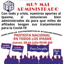 Ante la problemática general y del constante deterioro del Ipasme, el gremio docente está organizando una protesta en las sedes de los Ipasme del país. Esta se llevará a cabo, el próximo jueves 08 de Julio a las 09:00 AM.
