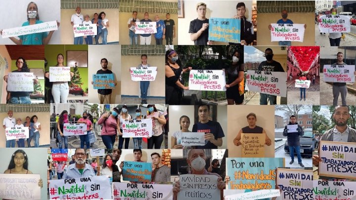 21-12-21.-Tanto en Venezuela como venezolanos en el exterior, vienen correspondiendo a la solicitud de mostrar la solidaridad con la causa de las y los trabajadores presos, tomándose una foto con un cartel y ponerla a rodar en las redes sociales. Acá te mostramos algunas.